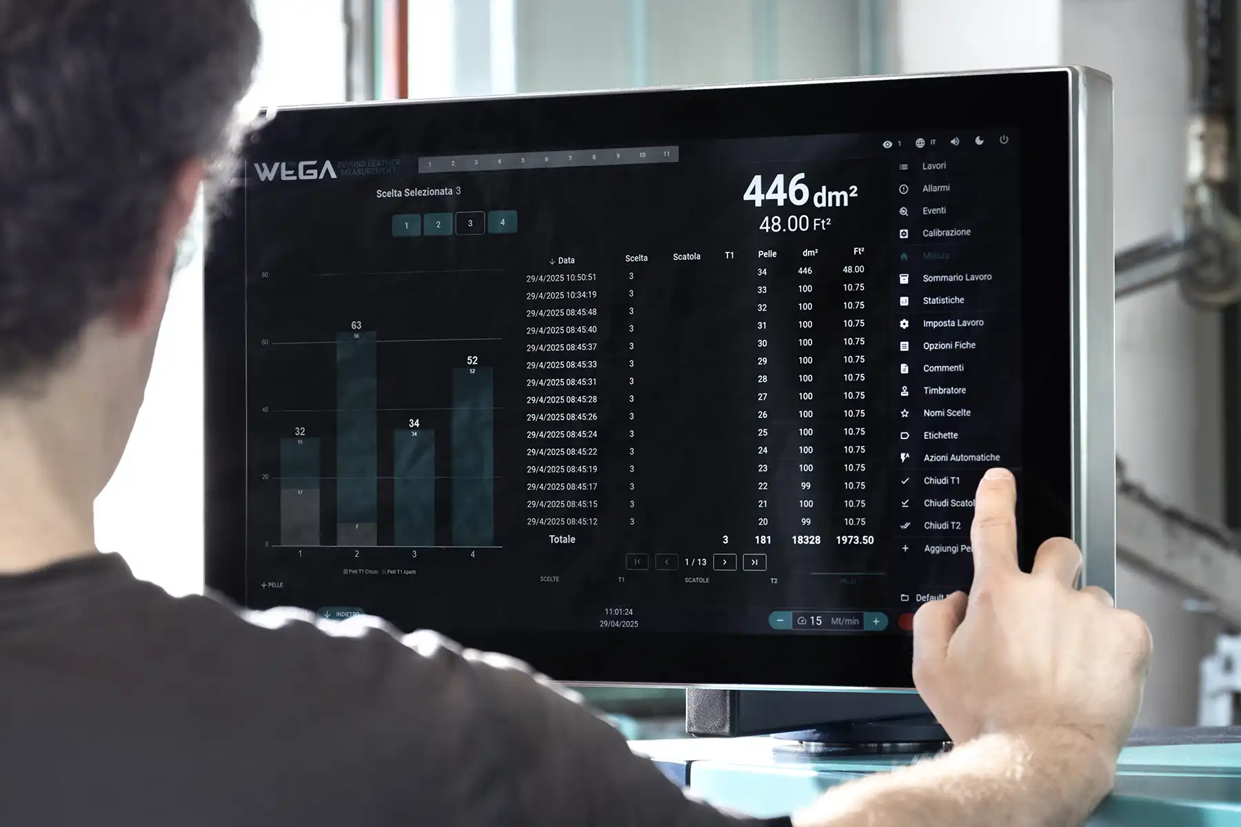 At Wega, we fully embrace the principles of Industry 4.0, developing advanced software for integration and data transmission to tannery management systems. This allows us to manage all phases of leather processing, from production to billing and shipping. The adaptability of our software to various languages and tannery management systems is another example of our commitment to customized and cutting-edge solutions. We are constantly advancing towards more evolved tracking systems, effectively responding to the increasingly complex needs of our customers.